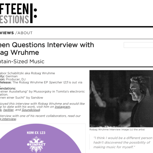 Fifteen Questions Interview with Robag Wruhme